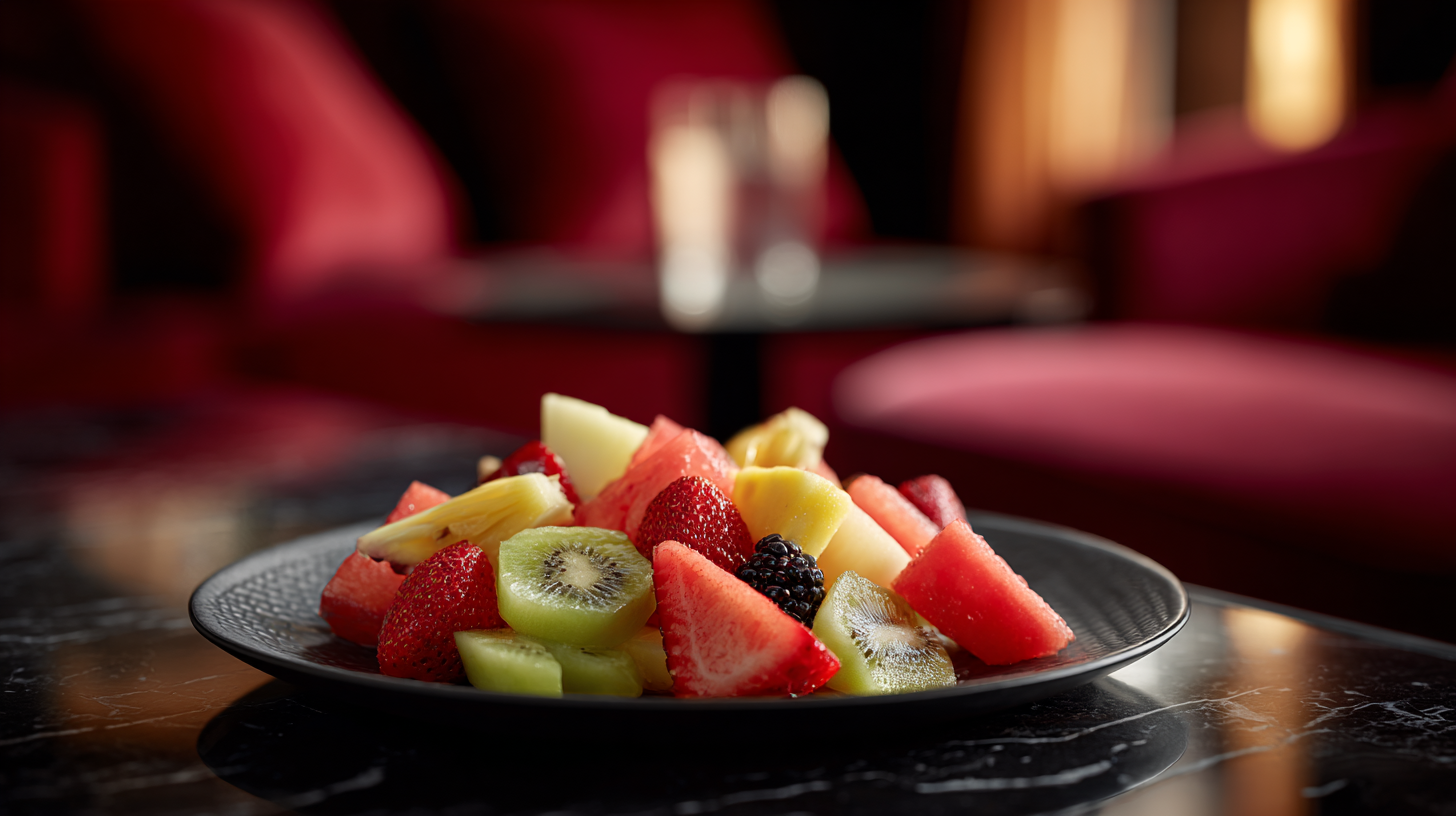 Assorted seasonal fruit, artistically arranged and served chilled for a refreshing finish.
