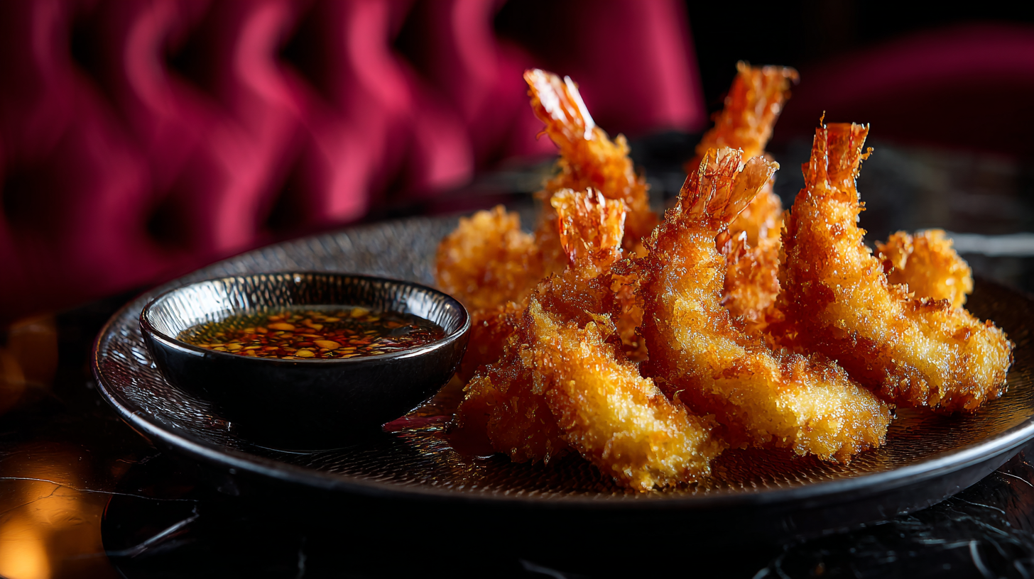 Lightly battered jumbo shrimp, fried crisp and served with a tangy soy-dipping sauce.
